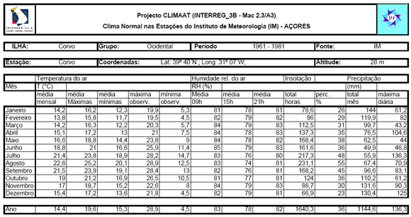 Ilha do Corvo Normais Climatológicas